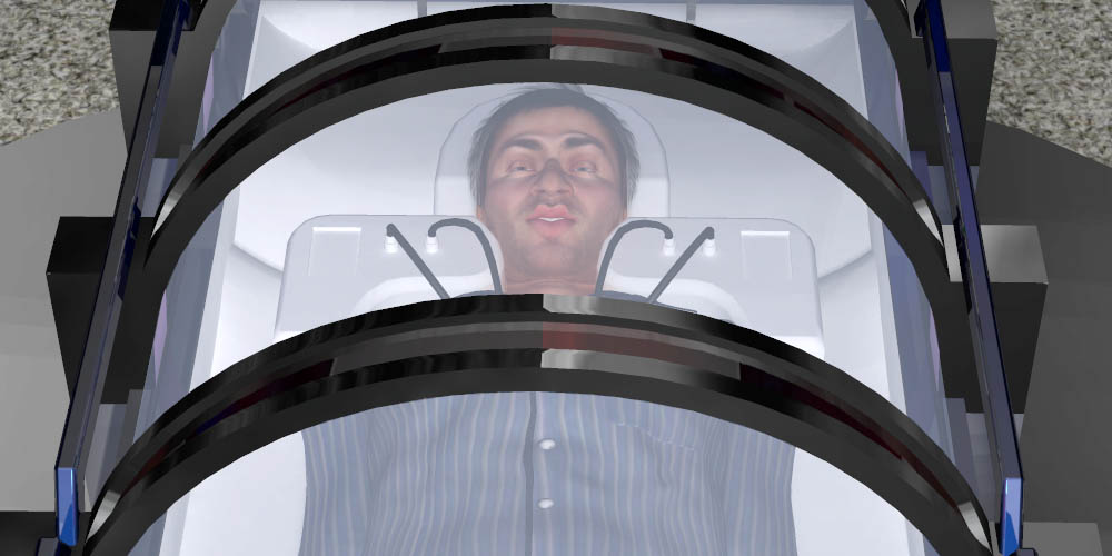 Walter opens his eyes, lifts his head and recalls where he is. He waits for the soft hydraulic hiss of the chamber opening up.