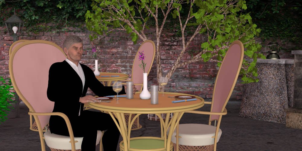 Two nights later Zachary Ephron sits at in a rattan chair on the patio of a local café. His attention is focused on the main door into the dining room, but patrons can also come into the area from the parking lot through a gate.